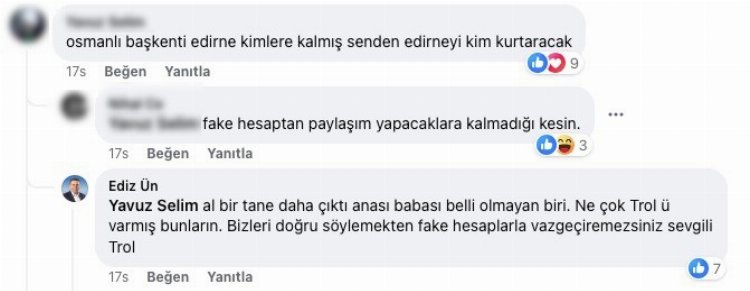 CHP Edirne Milletvekili Ediz Ün’ün, sosyal medya hesabından yaptığı bir paylaşım ve sonrasında kendisinin paylaşıma yorum yapan vatandaşlara vediği cevaplar tepkilere neden oldu.