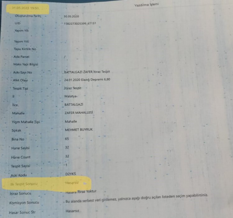 Çünkü yukarıda paylaştığım dilekçede Sivrice depreminden yalnızca 2 gün sonra Çevre, Şehircilik ve İklim Değişikliği İl Müdürlüğüne müracaat edilmiş. Dilekçenin sisteme kaydı yapılmış.