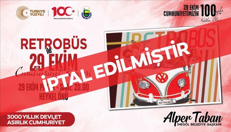 Bursa’da İnegöl Belediyesi’nin 22 Ekim’de gerçekleştireceği Cerrah Fasulye Şenliği ile 29 Ekim’de yapılması planlanan Retrobüs ile 29 Ekim Cumhuriyet Konseri, Filistin’de yaşanan insanlık dramı nedeniyle iptal edildi.