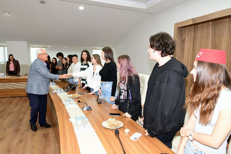 Avrupa Birliği’nin Erasmus Değişim Programı kapsamında Romanya’nın Mangalia kentinden gelerek Karabağlar’da bulunan Eşrefpaşa Anadolu Lisesi’nin konuğu olan öğrenciler, öğretmenleriyle birlikte Karabağlar Belediye Başkanı Muhittin Selvitopu’nu ziyaret etti.