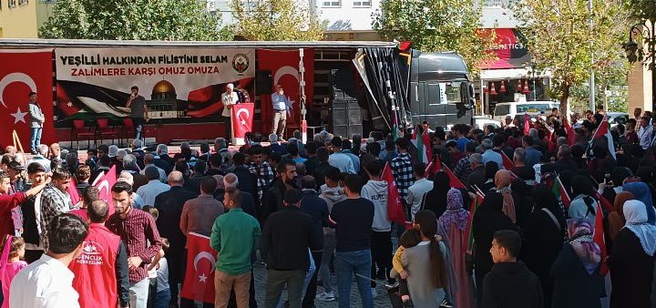 Mardin’in Yeşilli belediyesi tarafından Filistin’e destek mitingi düzenlendi. İlahilerin okunduğu mitingde İsrail’in saldırıları protesto edildi, Filistin’e destek...