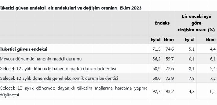 Tüketici güven endeksi 74,6 oldu ANKARA (İGFA) – TÜİK, Ekim ayına ilişkin Tüketici Güven Endeksi’ni yayınladı. Türkiye...