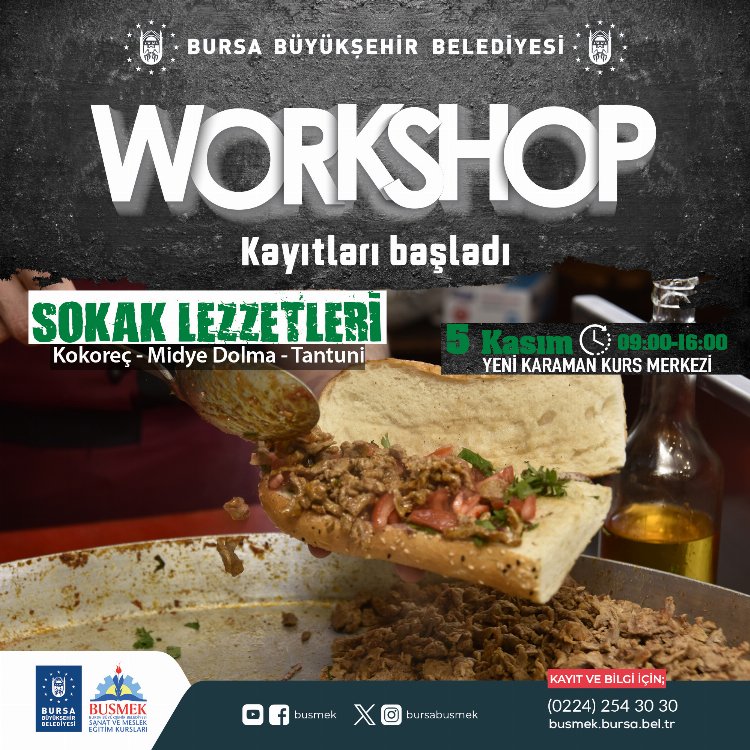 Atölye çalışmalarına katılmak için ön başvurular busmek.bursa.bel.tr adresinden online olarak veya Yeni Karaman Mesleki Eğitim Merkezi’nden yüz yüze yapılabilecek.