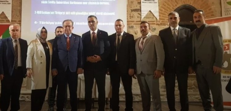 Daha sonra sözü konuk konuşmacı TÜRK DEGS Başkanı Doç. Dr. Müstafi Amiral Cihat Yaycı ya bıraktı. Ördekli Kültür Merkezi’ndeki konferansta konuşan Yaycı Paşa, Türkiye’nin İsrail Filistin savaşındaki dış politikasının takdire şayan olduğunu dile getirdi.