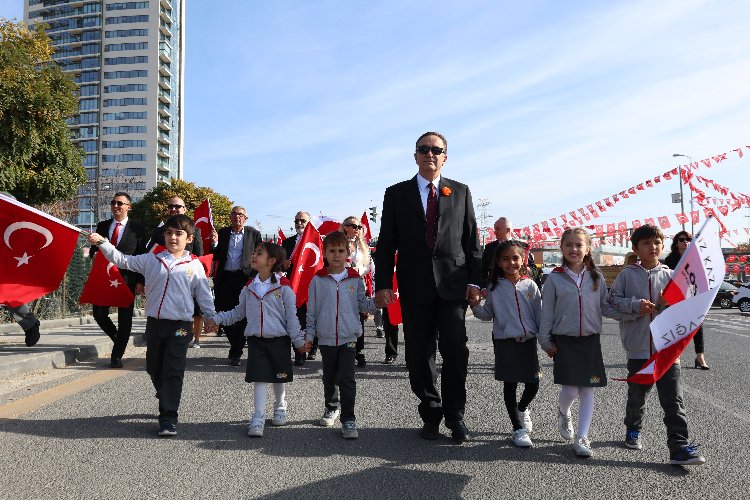 Kortej LSV Eğitim Kurumlarına ulaştıktan sonra burada LÖSEV Yönetim Kurulu Başkanı Dr. Üstün Ezer, Atatürk büstü önüne çelenk bıraktı.
