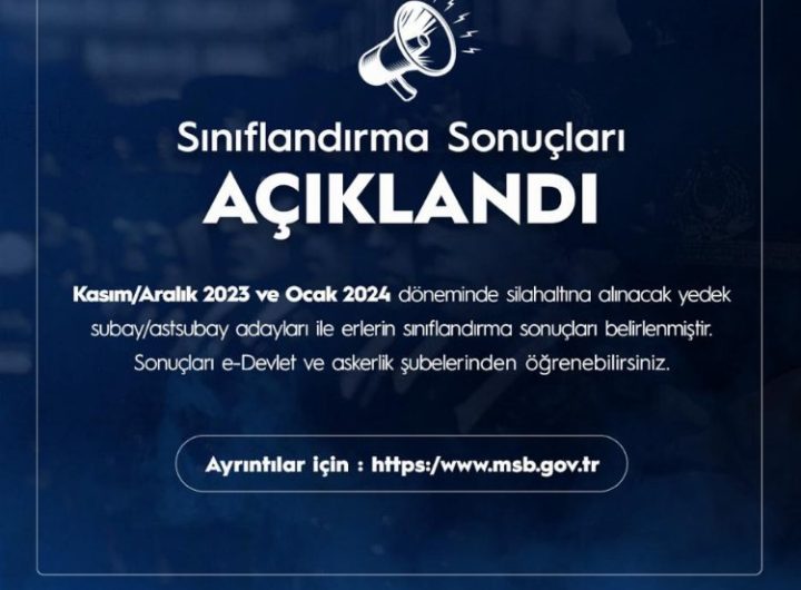 Milli Savunma Bakanlığı, askerlik yerleri ve celp tarihi sınıflandırma sonuçlarının açıklandığını duyurdu. ANKARA (İGFA) – Milli Savunma...