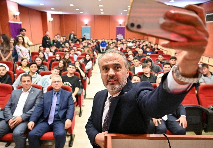 Bursa Büyükşehir Belediye Başkanı Alinur Aktaş, Atatürk Mesleki ve Teknik Anadolu Lisesi’nde eğitim gören öğrenci gençlerle bir...