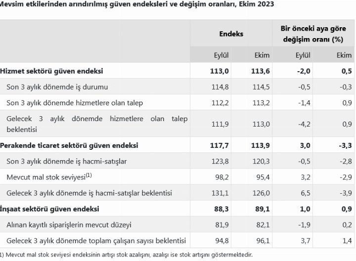 Ekim ayına ilişkin Güven Endeksleri verilerine göre hizmet sektörü yüzde 0,5, inşaat sektörü yüzde 0,09 artış gösterirken,...