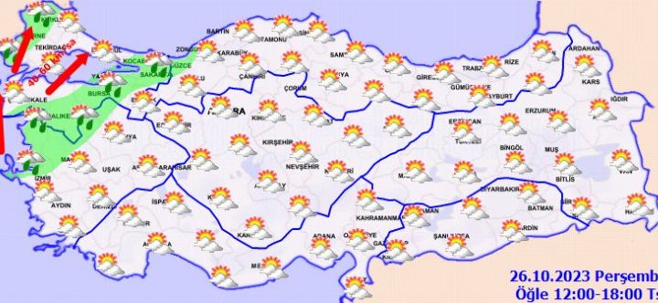 Ülkemiz genelinin parçalı yer yer çok bulutlu, Marmara’nın güney ve doğusu, Kuzey Ege kıyıları ile Edirne, Kırklareli,...