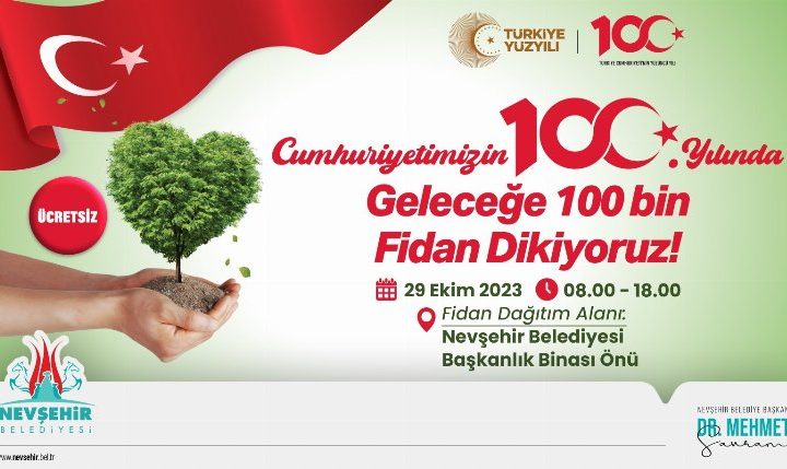 Nevşehir Belediyesi tarafından Türkiye Cumhuriyeti’nin kuruluşunun 100. Yılı dolayısıyla 29 Ekim Cumhuriyet Bayramı’nda vatandaşlara 100 bin fidan...