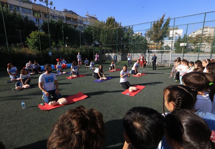 Dünya kalbi yeniden çalıştırma günü olan Resüsitasyon Derneği doktorları tarafından İzmir Vali Kutlu Aktaş İlköğretim Okulu öğrencilerine...