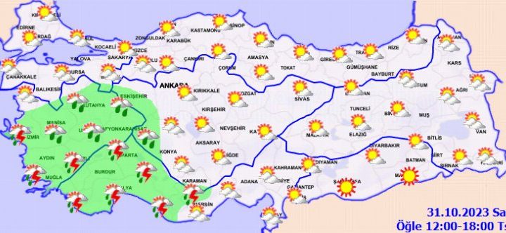 Ülkemizin batı kesimlerinin parçalı ve yer yer çok bulutlu, Ege, Batı Akdeniz, Eskişehir çevreleri, Konya’nın güney ve...