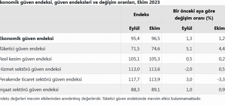 Ekonomik güven endeksi Eylül ayında 95,4 iken, Ekim ayında yüzde 1,2 oranında artarak 96,5 değerini aldı. ANKARA...