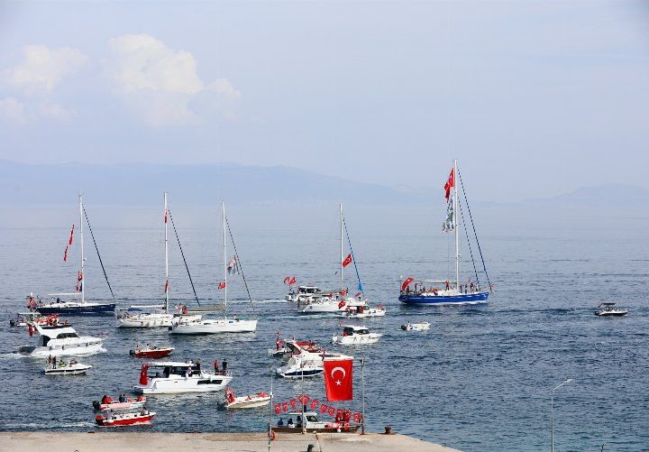 Türkiye Cumhuriyeti’nin kuruluş temellerinin atıldığı Bursa’nın Mudanya ilçesinde 29 Ekim Cumhuriyet Bayramı kutlamalarında denize açılan tekneler görsel...