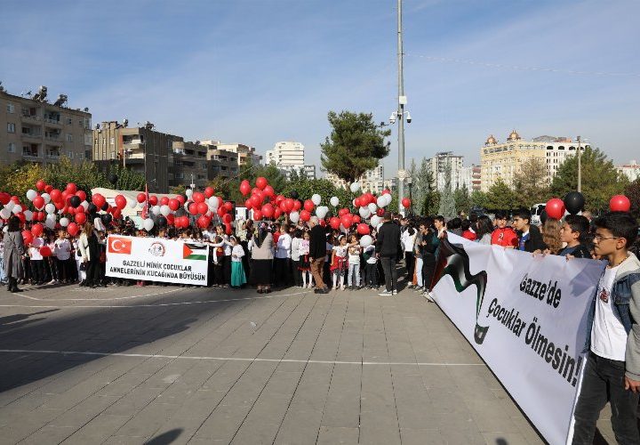 Mardin’de çocuklar, İsrail’in Gazze’ye yönelik saldırılarında yaşamını yitiren Filistinli 4 bin 324 akranı için gökyüzüne yüzlerce balon...