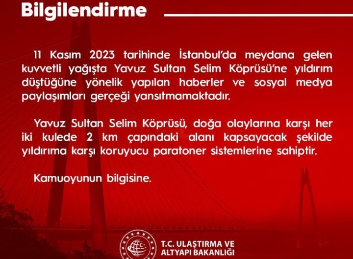Yavuz Sultan Selim Köprüsü’ne yıldırım düştüğüne dair bazı haber siteleri ve sosyal medyada yer alan gerçek dışı...