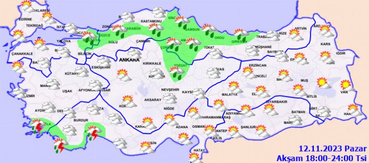 Yapılan son değerlendirmelere göre; Marmara, Ege, Batı Akdeniz, İç Anadolu’nun kuzeybatısı, Batı Karadeniz ve Orta Karadeniz ile Doğu Karadeniz’in kıyı kesimi, Yozgat, Kırıkkale, Van, Bitlis, Siirt, Şırnak ve Hakkari çevrelerinin sağanak ve gök gürültülü sağanak yağışlı, diğer yerlerin parçalı ve az bulutlu geçeceği tahmin ediliyor.