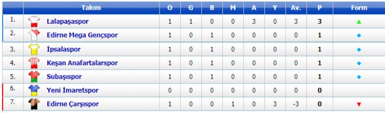 Edirne Süper Amatör Lig B Grubu’nda bugün oynanan karşılaşmalarda alınan sonuçlar ve puan durumu şöyle: