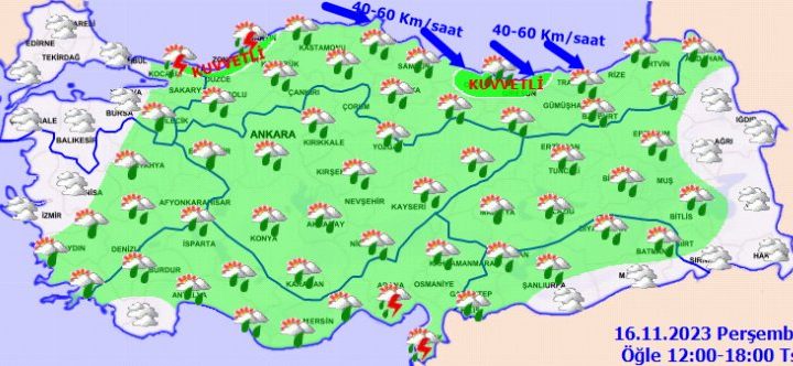 Meteoroloji, Batı ve Doğu Karadeniz kıyıları, Bursa, Osmaniye, Ordu, Tunceli, Bingöl, Muş, Bitlis, Şırnak, Siirt ve Batman...