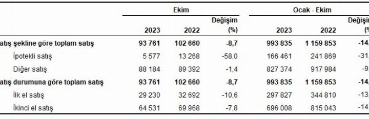 Türkiye genelinde Ekim ayında konut satışları yüzde 8,7 azaldı. 93 bin 761 konutun satıldığı Türkiye’de, İstanbul satışlarda...