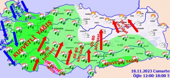 Meteoroloji, Marmara, Ege, Akdeniz, Batı Karadeniz, İçanadolu ve Güney Doğu Anadolu’da bulunan tüm illere kuvvetli yağış, sel,...