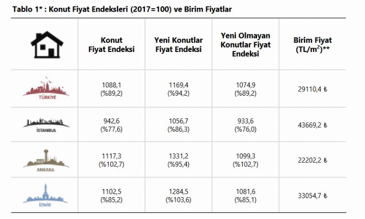 İstanbul, Ankara ve İzmir’in konut fiyat endekslerindeki gelişmeler değerlendirildiğinde ise 2023 yılı Eylül ayında bir önceki aya göre, sırasıyla yüzde 4,1, 5,5 ve 2,9 oranlarında artış gözlendi. Endeks değerleri bir önceki yılın aynı ayına göre, İstanbul, Ankara ve İzmir’de sırasıyla yüzde 77,6, 102,7 ve 85,2 oranlarında artış gösterildi.