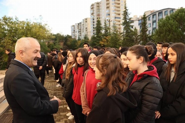Günde 2 bin gencimiz oradan istifade edecek. Geliştirilmiş ekranlar ile Türkiye’de bir ilk gerçekleştireceğiz. Hocalarınız ile birlikte bu ekranlarda derslerinizi üçüncü ya da yedinci boyutta görebileceksiniz. Tüm öğrenci kardeşlerimizi Güzide gençlik Merkezimize davet ediyor, derslerinizde başarılar diliyorum” ifadelerini kullandı. Bayrak töreninin ardından sınıfları da ziyaret eden Kaymakam Özyiğit ve Başkan Büyükgöz, öğretmenler odasında eğitimciler ve okul idarecileriyle de sohbet etti.
