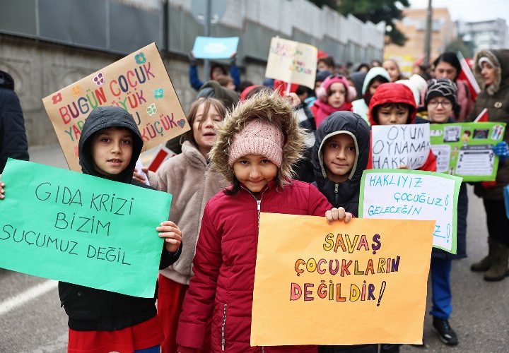 Bursa Nilüfer’de, 20 Kasım Dünya Çocuk Hakları Günü dolayısıyla yürüyüş düzenleyen çocuklar, yaşanabilir bir dünya taleplerini dile...