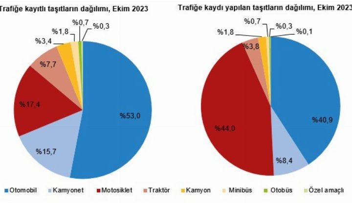 Motorlu Kara Taşıtları İstatistikleri’ne göre Ekim ayında 184 bin 767 adet taşıtın trafiğe kaydı yapıldı. Bu ay...