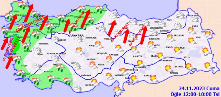 KUVVETLİ RÜZGAR UYARISI: Rüzgarın; Marmara, Kuzey Ege kıyıları, Batı Karadeniz ile Orta Karadeniz’in iç kesimlerinde güney yönlerden kuvvetli (40-70 Km/saat) olarak esmesi beklendiğinden yaşanabilecek olumsuzluklara karşı dikkatli ve tedbirli olunmalıdır.