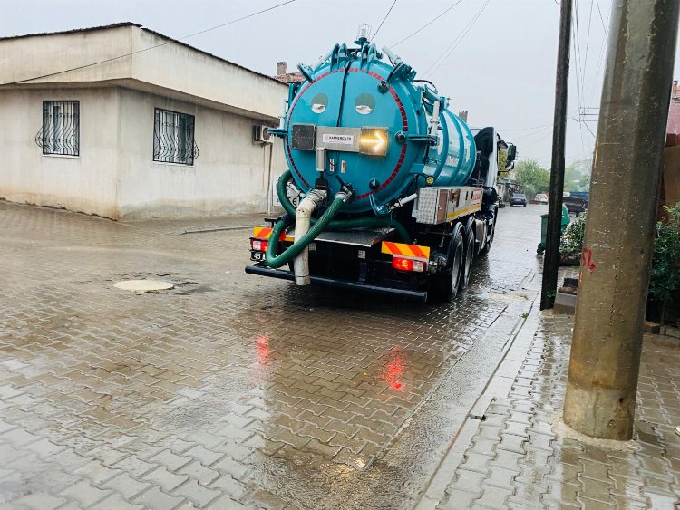 Sağanak yağışta canla başla çalışan ekipler, mazgal ve rögarların temizliğini yaparak su akışını sağlıyor, kısmi su birikintilerine de anında müdahaleye devam ediyor.