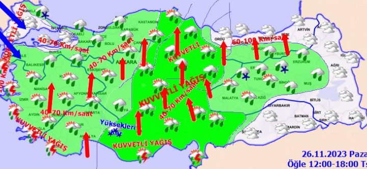 Meteoroloji, Marmara’nın doğusu, İç Ege, Akdeniz, Karadeniz, İç Anadolu, Doğu Anadolu’nun batısı ile Gaziantep, Kilis ve Adıyaman...