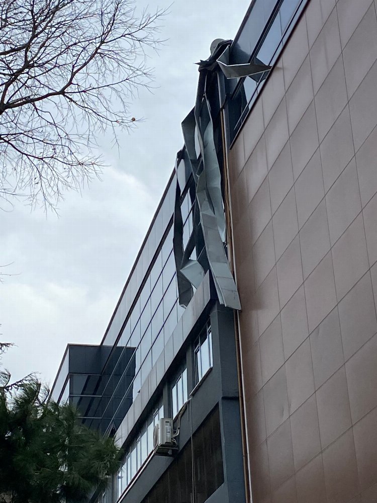 Çatı parçalarının toplanması için olay yerine kepçe araç yönlendirilirken, çatı parçalarının aşağı sarkmaya devam ettiği ve etrafta bir güvenlik şeridinin olmaması dikkatlerden kaçmadı.