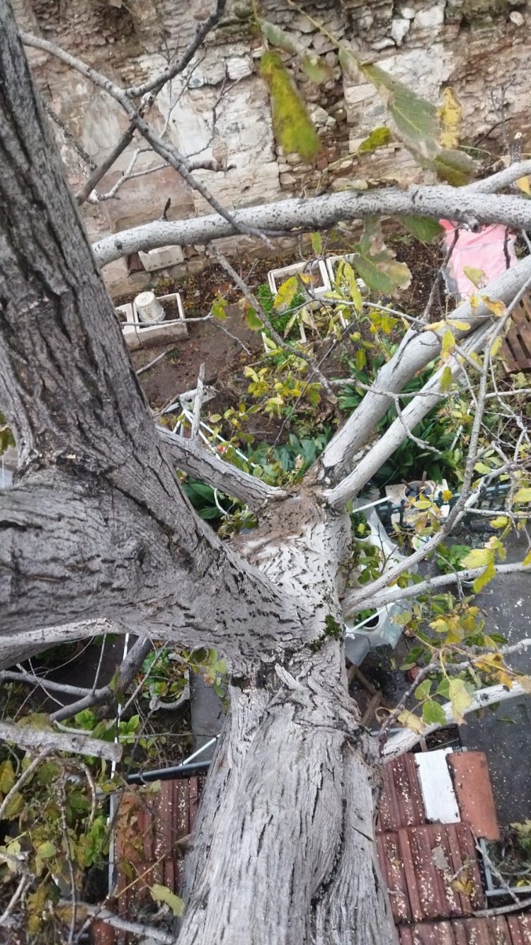 Osmangazi Belediyesi ekipleri, gün boyunca 21 mahallede 130, 12 okulda 52 ağacı devrildikleri yerden kaldırarak günlük hayata uygun hale getirdi.