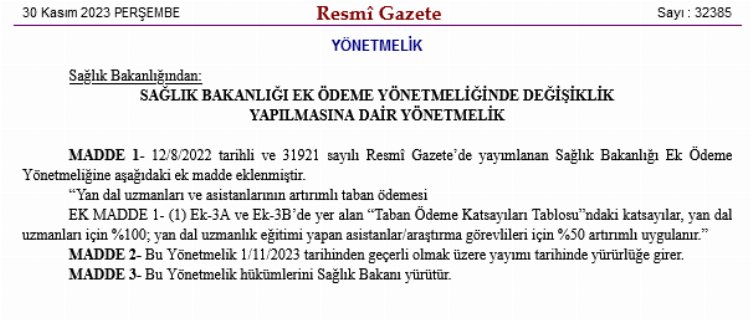 Sağlık Bakanlığı Ek Ödeme Yönetmeliğinde Değişiklik Yapılmasına Dair Yönetmelik, bugünkü Resmi Gazete’de yayımlandı.