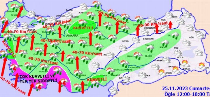 Meteoroloji, Marmara’nın doğusu, İç Ege, Akdeniz, Karadeniz, İç Anadolu, Doğu Anadolu’nun batısı ile Gaziantep, Kilis ve Adıyaman...
