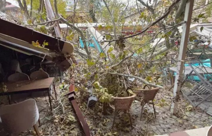 Bursa lodos fırtınası nedeniyle Koza Han’ın avlusunda bulunan 250 yaşındaki tarihi çınar devrildi. Esmanur Gülbahar/ Gülsüm Yıldırım/Herkes...