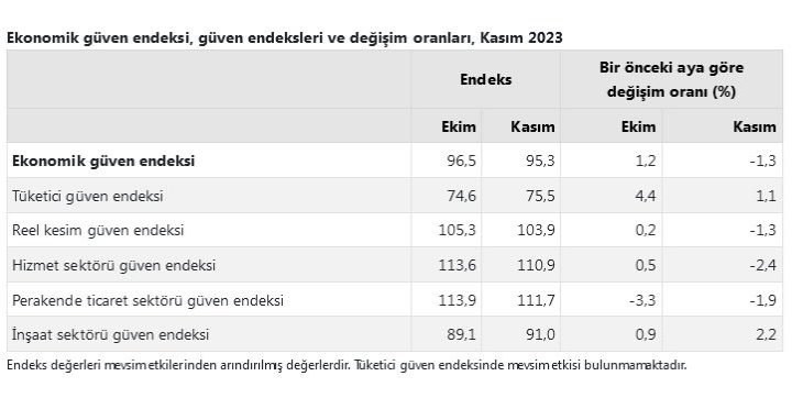 Ekonomik güven endeksi, kasımda aylık bazda yüzde 1,3 azalarak 95,3 değerini aldı. ANKARA (İGFA) – Türkiye İstatistik...