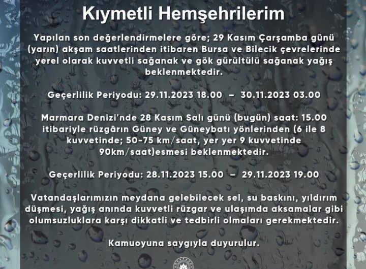Marmara Bölgesi’ndeki illerin valilikleri, akşam saatlerinden itibaren bölgeye Orta Akdeniz üzerinden yeni bir alçak basınç sisteminin girmesinin...