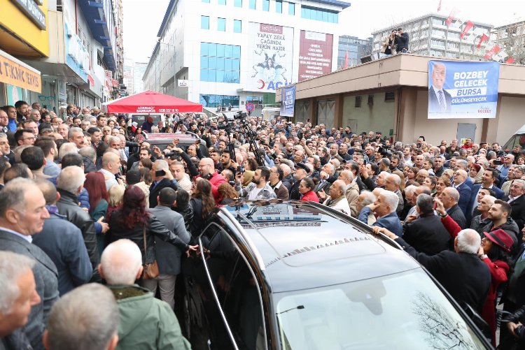 Konuşmaların ardından Mustafa Bozbey, adaylık dosyasını Nihat Yeşiltaş’a teslim etti. Salona sığmayan binlerce Bursalı ise Mustafa Bozbey’in adaylık açıklamasını takip etmek için İl Başkanlığı binasının önünde bekledi.