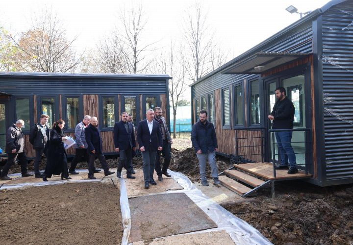 Kocaeli Büyükşehir Belediye Başkanı Tahir Büyükakın, çalışmalarda sona gelinen Doğu Kışla Parkındaki Lokomotif Çocuk Köyünü çocuklar ve...