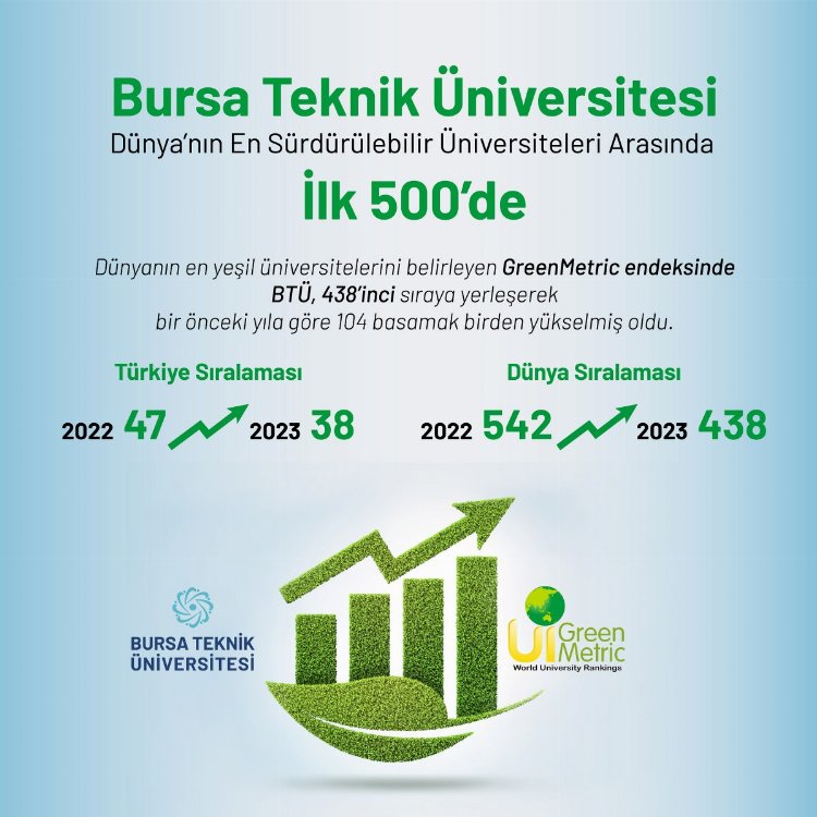 BTÜ, 2022 yılında 47’nci olduğu Türkiye sıralamasında 2023 yılında ise 98 üniversite arasında 38’nci sıraya yerleşerek, 9 basamak yukarı çıkma başarısını yakaladı. Yine 2022 yılında Asya sıralamasında 285’nci olan BTÜ, bu yıl 232’nci sıraya yerleşti. Bir önceki yıla göre derecelendirme ölçütlerinde önemli bir başarı yakalayan Bursa Teknik Üniversitesi özellikle; Ulaşım, Enerji ve İklim Değişikliği, Eğitim ve Araştırma ile Atık kategorilerinde başarılı performans sergiledi.