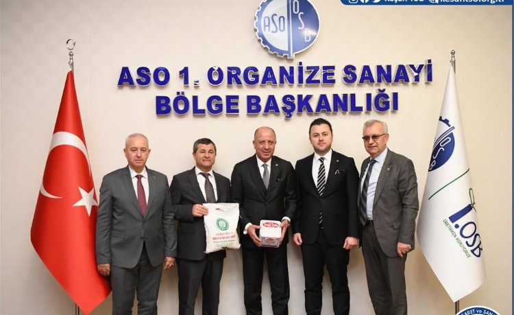 Ankara Sanayi Odası (ASO) Yönetim Kurulu Başkanı Seyit Ardıç, ASO 1. Organize Sanayi Bölgesi Yönetim Kurulu Başkanı Niyazi Akdaş ve Yönetim Kurulu Başkan Vekili Mustafa Bozkurt’u ziyaret eden heyet, Keşan Gıda İhtisas Organize Sanayi Bölgesi ve İpsala Karma Organize Sanayi Bölgesi ile ilgili görüşmelerde bulundu. Seyit Ardıç’a, Niyazi Akdaş ve Mustafa Bozkurt’a teşekkür edildi.