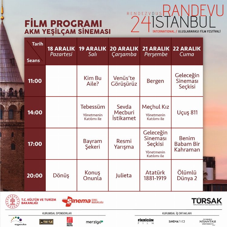 T.C. Kültür ve Turizm Bakanlığı Sinema Genel Müdürlüğü katkılarıyla Türkiye Sinema ve Audiovisuel Kültür Vakfı (TÜRSAK) tarafından 18-22 Aralık tarihleri arasında gerçekleştirilen 24.Randevu İstanbul Uluslararası Film Festivali’nde Atlas 1948 Sineması’nda ödül töreni gerçekleştirildi.