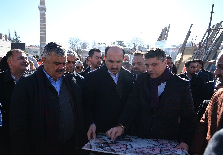 Konya Büyükşehir Belediye Başkanı Uğur İbrahim Altay, Tarihi Ereğli Kent Meydanında devam eden 100 dükkânın cephe sağlıklaştırma...