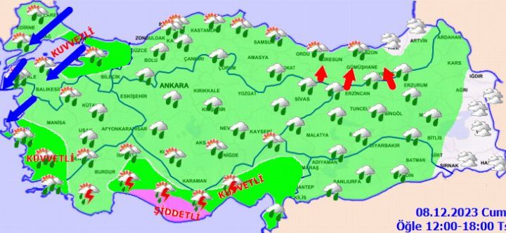 Meteoroloji, Marmara, Ege ve Akdeniz bölgelerinde beklenen kuvvetli yağış, sağanak ve gök gürültülü sağanak yağış, fırtına, sel,...