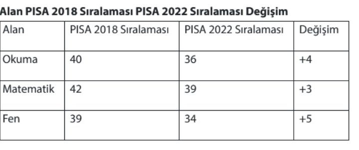OECD’nin 81 ülkenin katılımıyla gerçekleştirdiği PISA 2022 raporuna göre Türkiye, on yıldan uzun bir süre boyunca çoğu...