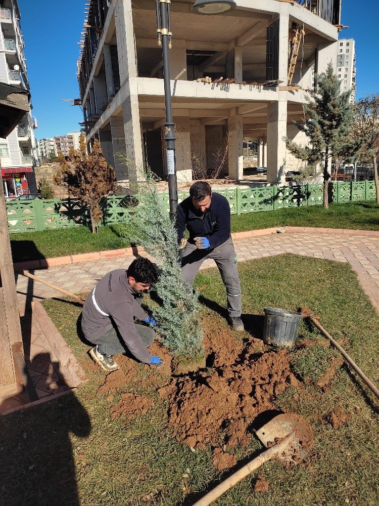 Mardin Artuklu Belediyesi Park ve Bahçeler Müdürlüğüne bağlı ekipler tarafından, kentin farklı noktalarında aralarında yetişkin yapraklı, ibreli ve çalı bitkilerinin dikimleri sürüyor.