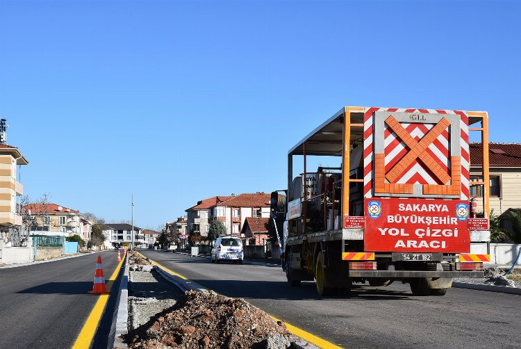 Sakarya Büyükşehir Belediyesi, şehrin kuzey bölgesinde trafikte araç ve yaya güvenliği için yol çizgi işlemlerine başladı.