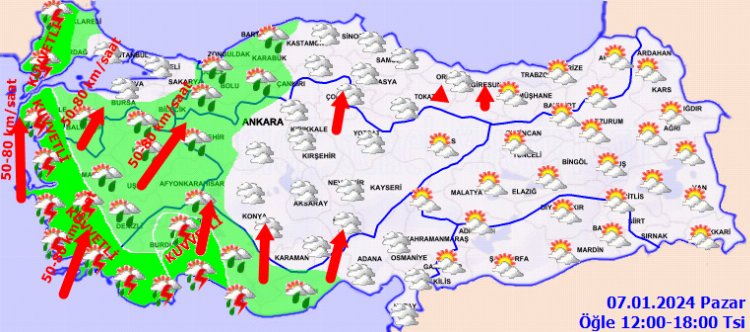 ANKARA (İGFA) – Meteoroloji Genel Müdürlüğü 7 Ocak 2024 Pazar gününe ilişkin hava raporunu açıklandı.